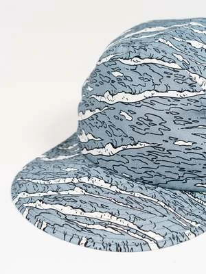 The Arpenteur Marina Cap in Atlantic Wave Camo is a light, flexible fair-weather sailing hat featuring an exclusive printed camouflage pattern from long-time Arpenteur collaborator Rgric. It is made of a durable, lightweight cotton-linen canvas and is easily folded to store in a pocket, bag, or otherwise. Its elasticated back and playful wave pattern reflect the cap’s nautically inspired nature.