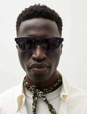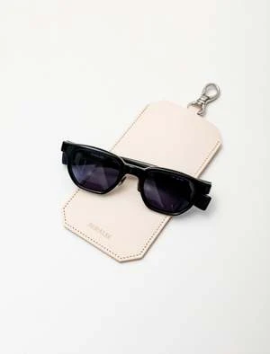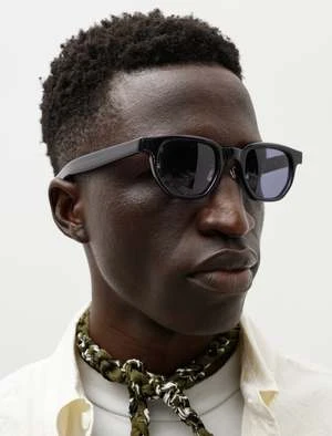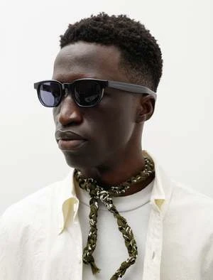 A classically styled, Japanese made pair of sunglasses with an acetate frame in a very dark, near black navy. Arms are constructed with a very gentle curve to easily accommodate many head shapes and feature a hatched finish at the tip for added grip behind the ears. Finished with tonal lens and silver toned adjustable nose pads.