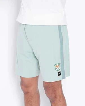 DETAILS: 4-way stretch, Contrast sideseam tape, Custom Almond Surfboards patch Back patch pocket with zip closure, Inner waistband zigzag stitch to provide ease, Triple needle stitch for lasting use, Recycled polyester drawcord, Recycled polyester woven labels, FSC approved paper swing tags.