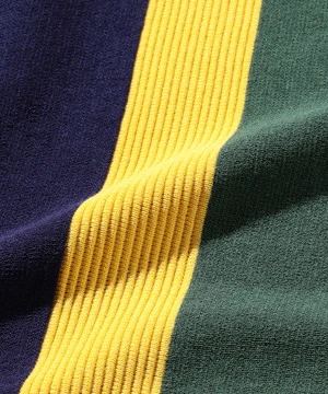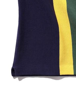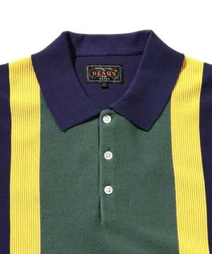 BEAMS PLUS polo shirt is inspired by vintage bowling styles. Its been knitted in Japan from wool with ribbed panels and vertical stripes.