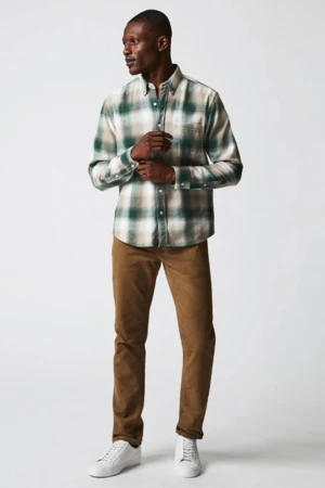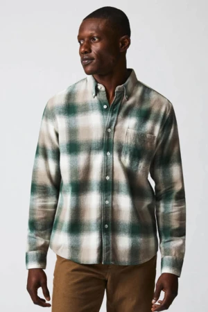 Billy’s best-selling Tuscumbia shirt is the cornerstone of lived-in luxury. This version is cut from a custom flannel cotton plaid in a standard fit, providing ease of movement and ultimate comfort. Its constructed with a button-down collar, and a box-pleated body. Thoughtfully finished with genuine mother-of-pearl buttons, a bias spade chest pocket, and a subtle detail: our heirloom ribbon applied to the bottom of the under placket.