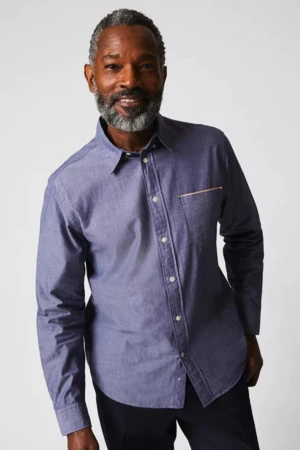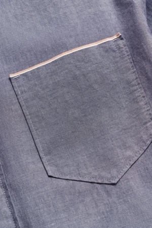 Billy Reid’s MSL 1-Pocket shirt has long been a hard-working, versatile staple. This version is crafted in India from 100% cotton in a twisted yarn, adding texture to an icon of rugged style. It comes in a standard fit, and finished with signature unexpected details like a hidden button-down collar, selvedge at the interior sleeve, and a spade-shaped pocket, also lined with selvedge.