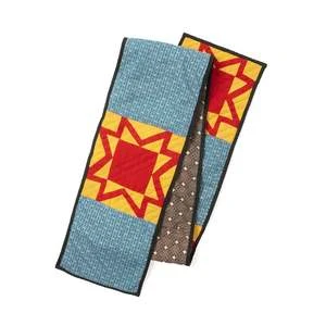 – This scarf is inspired by Indian quilt block amoung 1890s to 1900s. The Turkey red and yellow blocks are surrounded by printed calico fabric.