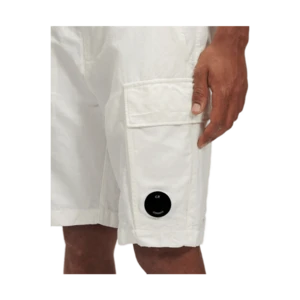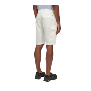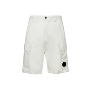 Bermuda shorts with zip and button closure, belt loops and slanted front pockets. They also feature two back pockets, two cargo-style pockets, and a CP Company lens. They are in a cotton linen blend and garment dyed for greater depth and color intensity.