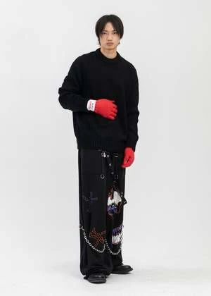 Model is 6 (183 cm), 125 pounds (56 kg), usually wears M in tops. A size 30 in denim and 46 in trousers. Size 10 in shoes.