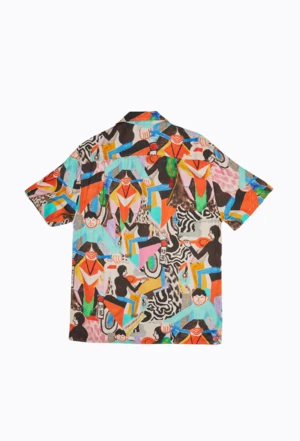 Relaxed Fit Shirt With Resort Collar, Wooden Buttons, Chest Pocket And Al l Over Yardage Print , 100% Rayon Fabrication With A Heavy Enzyme Stone Wash