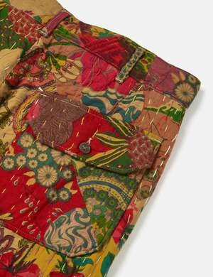 Featuring twin side pockets with rear button closer flap pockets, with belt loops and button closure.