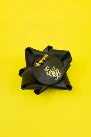 Crafted from the finest calf leather, this black leather present brooch is the perfect statement piece for any outfit. With a sophisticated and stylish design, the brooch is sure to elevate any ensemble.