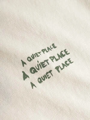 It’s a reminder to seek solace in the midst of life’s chaos, offering a haven of calmness right at your heart. This t-shirt embodies the essence of tranquility with its handwritten “a quiet place” on the chest and an enchanting watercolor print on the back featuring treetops and Fort’s handwritten logo in red.