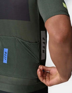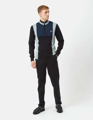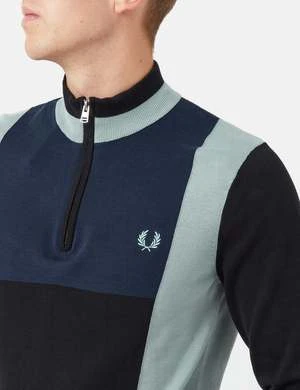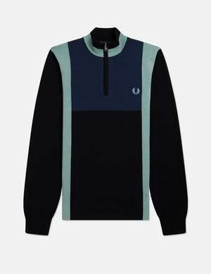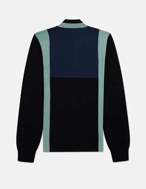 Taking influence from the classic knitted cycling jerseys of continental Europe, this piece features a bold colour block design, a funnel neck, zip opening and our signature Laurel Wreath embroidery.