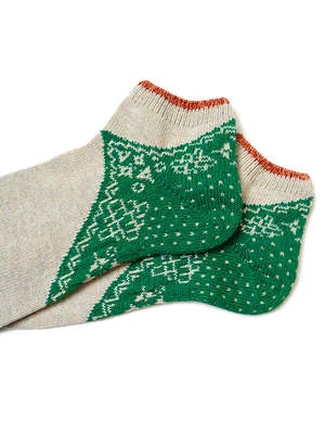 Moderately thick ankle socks. These are eye-catching socks with a vivid bandana motif on the heel part.