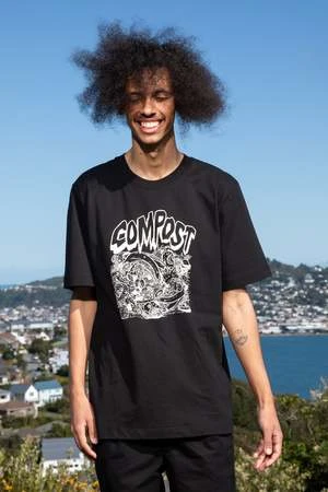 Our classic tee, made from 100% certified Fairtrade organic cotton poplin and screenprinted with a custom illustration by @yeehawtheboys. Inspired by band tees and punk aesthetic, the Compost Staple Tee seeks to make a statement by promoting the benefits of compost for our communities and planet.