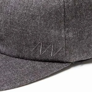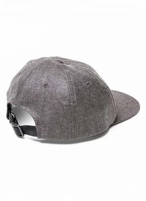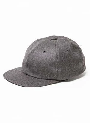 A 6-panel hat made from wool serge fabric. It retains the familiar details of a baseball hat such as the crown button and vent holes, but features a slightly deeper crown and a gently curved brim for a classic style. The back section is adjustable with a tape.