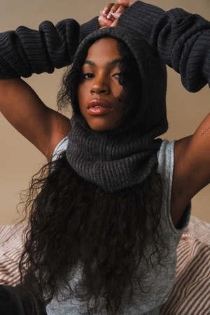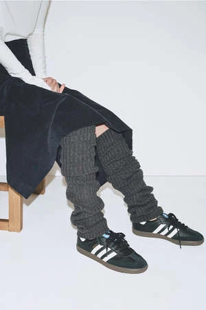 Mijeong Park chunky knit leg warmer in ribbed charcoal.