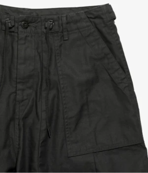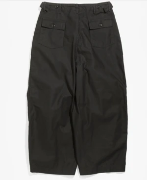 The unique silhouette makes the Needles H.D. Pant a popular item that is in the collection every season. With an exaggerated front created by darts sewn into the waist and hem, the almost 3-dimensional shape feels loose and is comfortable to wear. Features surplus front pockets and an adjustable waist with toggles to lock size.