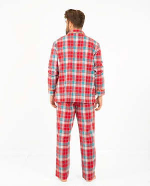 No. 86 Pajama Suit in multi by Original Madras Trading Company. Collared button-up pajama in a multi colorway plaid pattern.