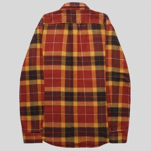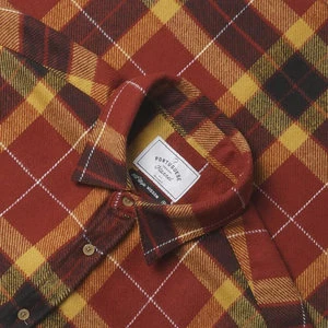 Baviera Check flannel long sleeve shirt in rust and mustard from Portuguese Flannel. Urea buttons, one chest pocket. Regular fit.