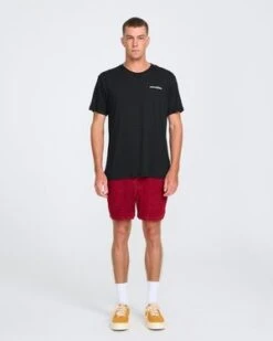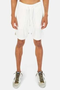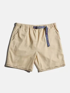 The Sex Hippies Welder’s Stitch Shorts in Creme Brle are a relaxed fit short constructed from a medium-weight cotton herringbone fabric. The shorts feature two front pockets, two rear welt pockets, and an elastic waist with an integrated adjustable jacquard belt. The Shorts are finished with contrasting brown “welder’s stitch” embroidery inspired by the hand-sewn embellishments welder’s sported on their caps and other garments, and a logo embroidery hit above the right rear pocket.