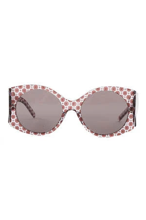 Stella McCartney transparent rectangle frames featuring brown circular pattern. Beautiful, intricate pattern makes them perfect to add to your shade collection!