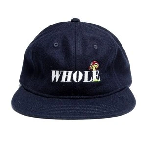 Embroidered “WHOLE” logo wool cap with a shroom growing out if it.